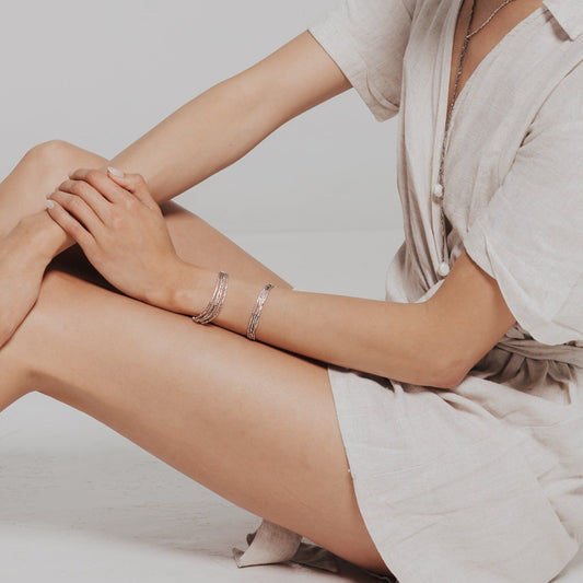 PULSERA LAUREL ROSA CON ORO BLANCO