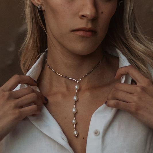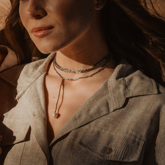COLLAR LARGO DORADO CHAPA DE ORO PERLADO